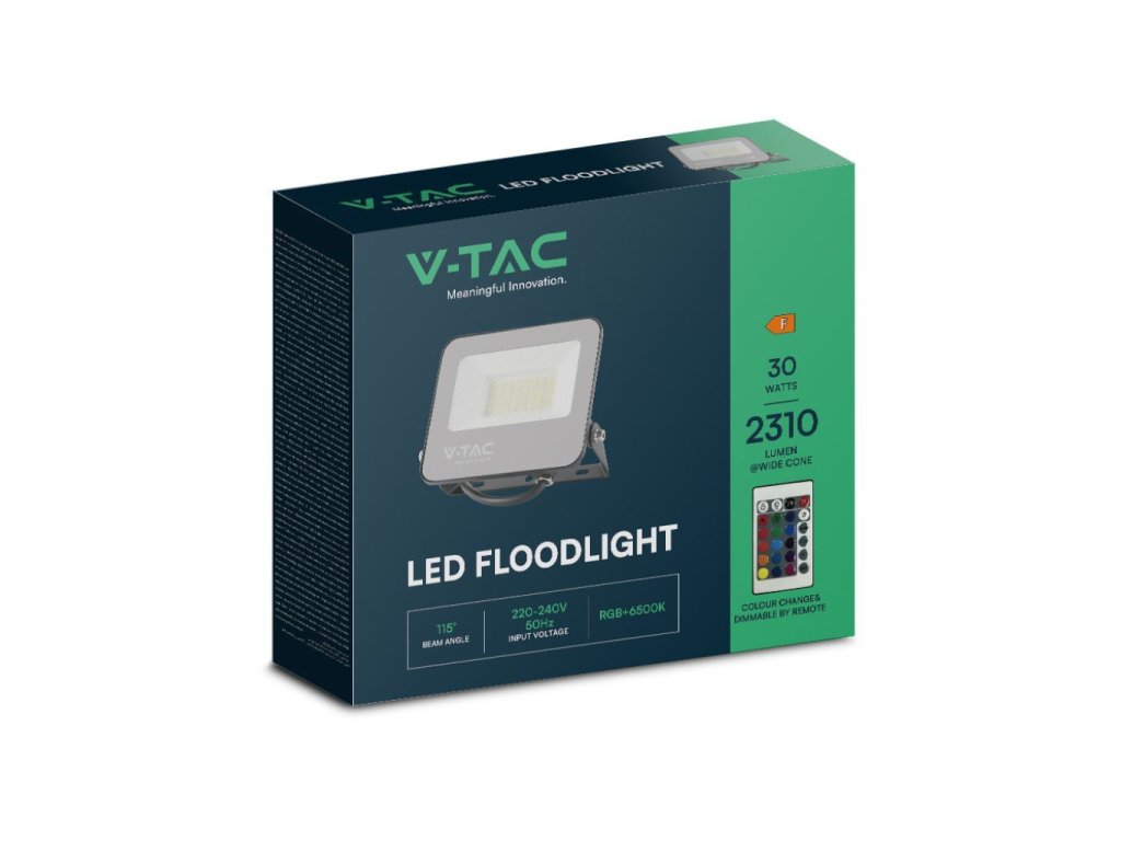 Reflektor LED RGB+W (6500K) cu telecomandă 30W, 2310lm, IP65