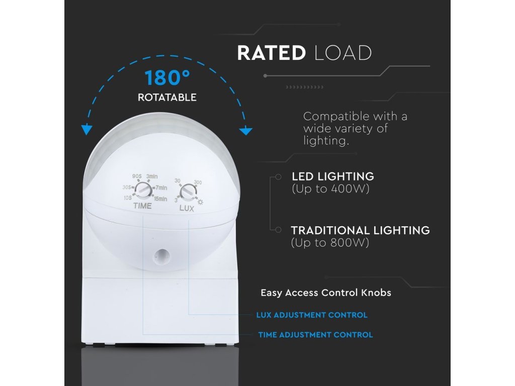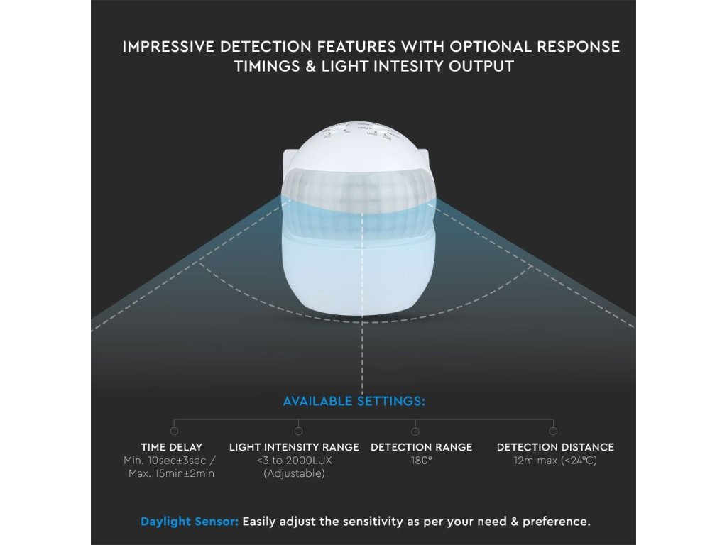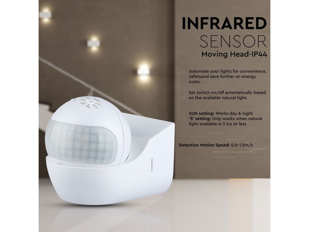 Senzor de mișcare cu infraroșu, rotativ, alb