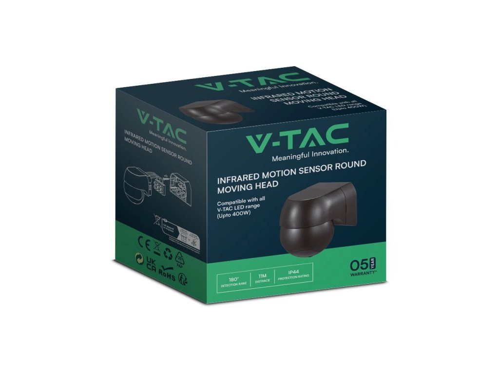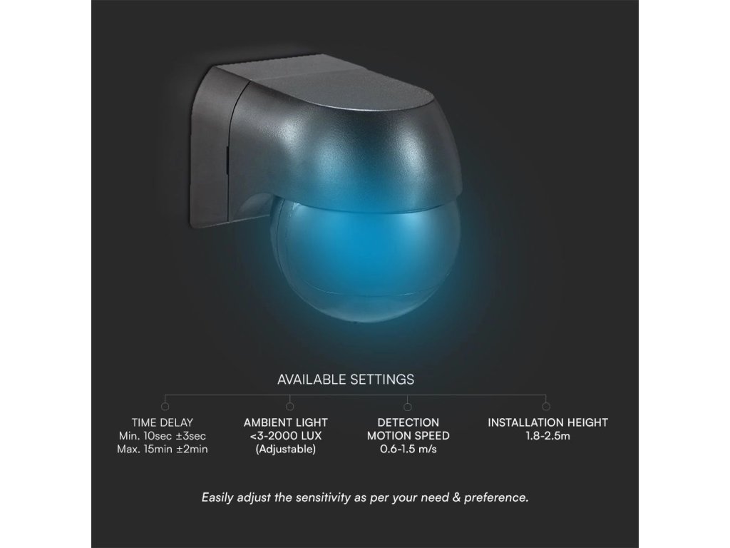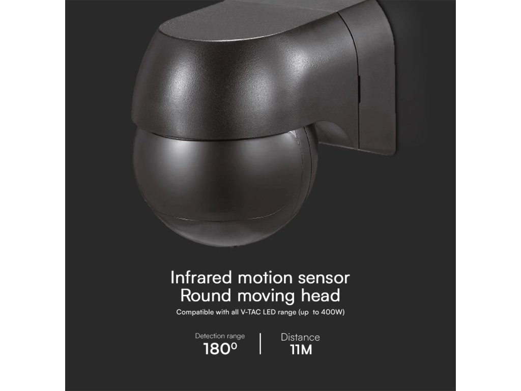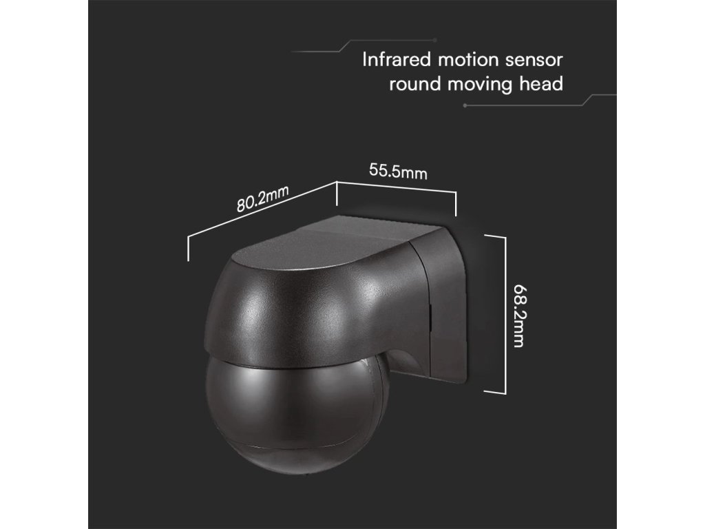 Senzor de mișcare cu infraroșu pentru montare pe perete cu cap mobil, negru