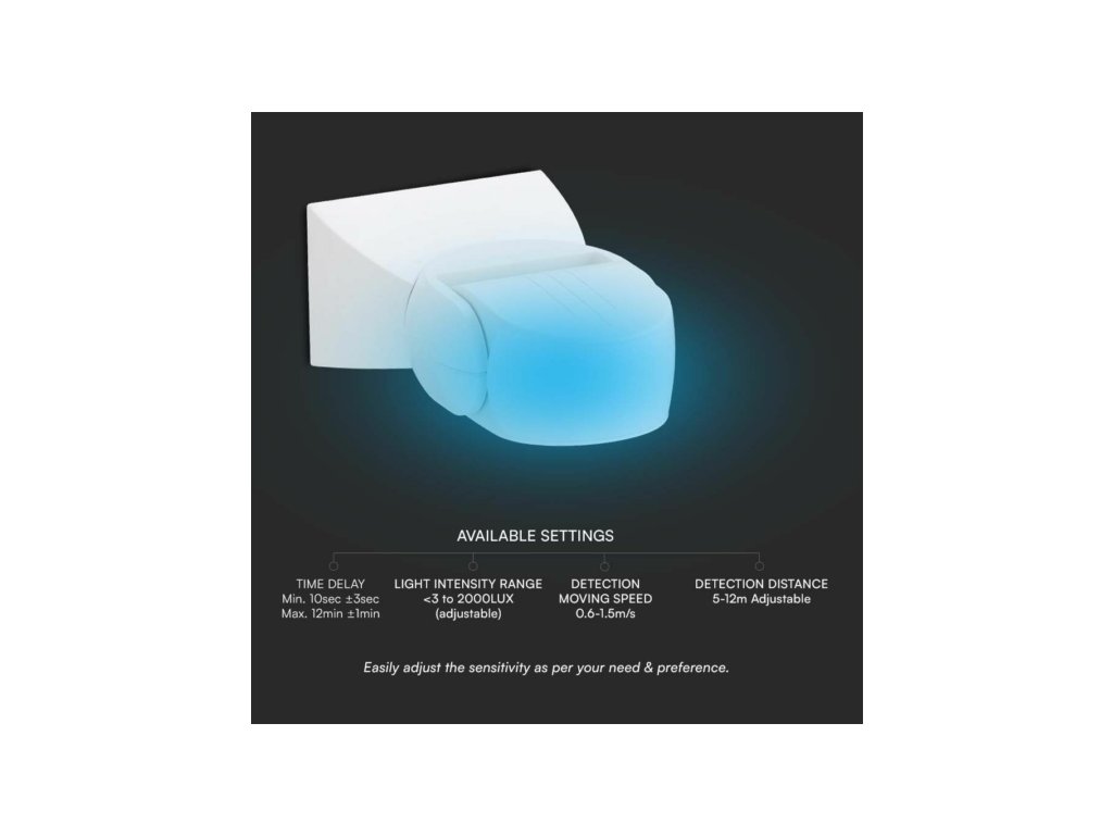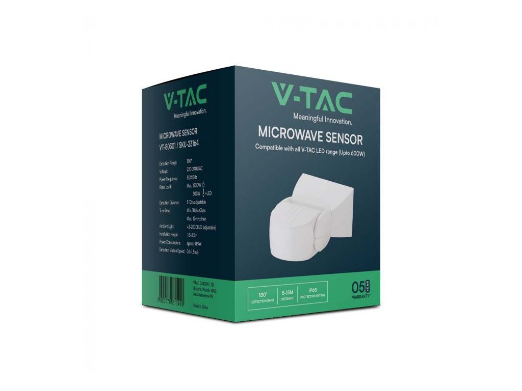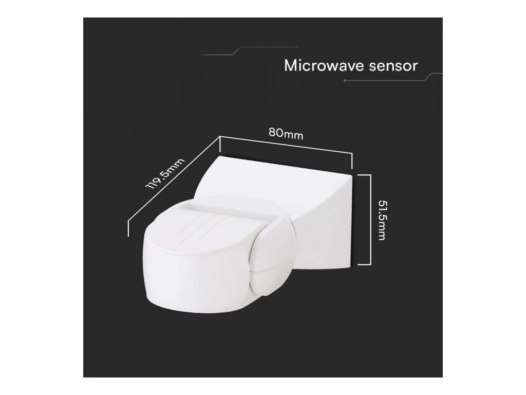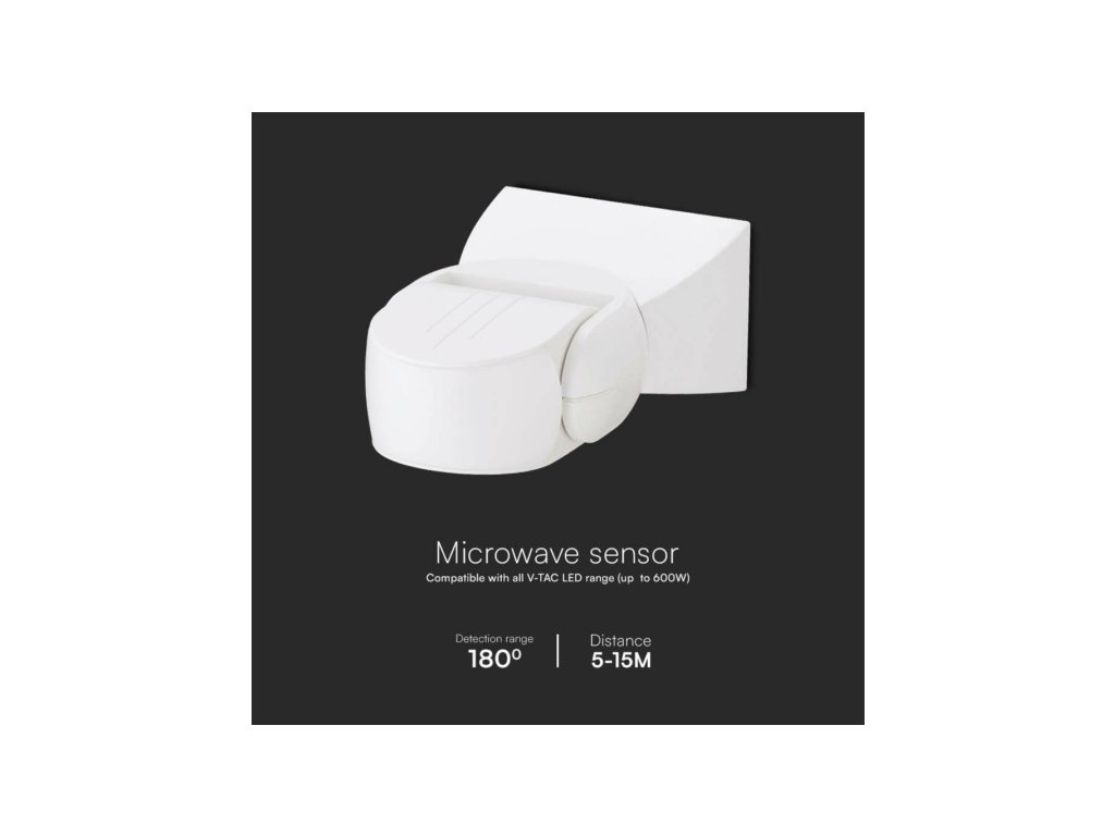 Senzor de mișcare cu microunde alb, max. 600W, 5-15m, 180°, IP65