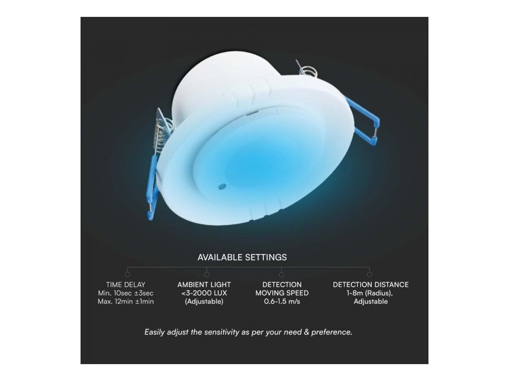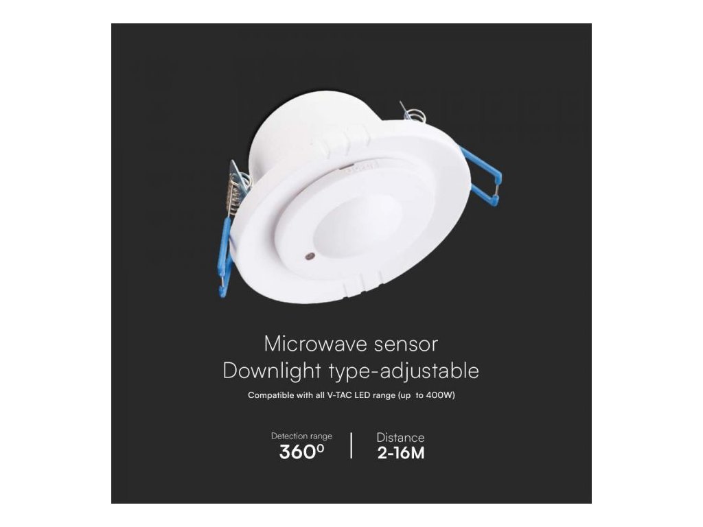 Senzor de mișcare cu microunde încastrat, unghi ajustabil, IP20, max. 400W, 2-16m, alb