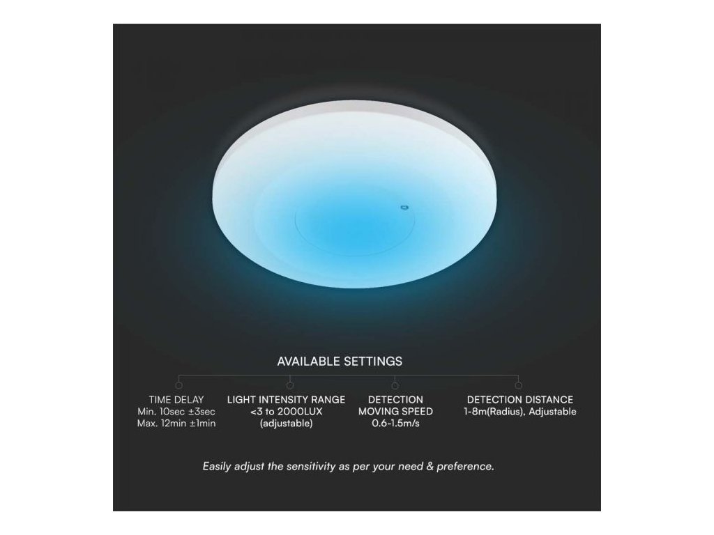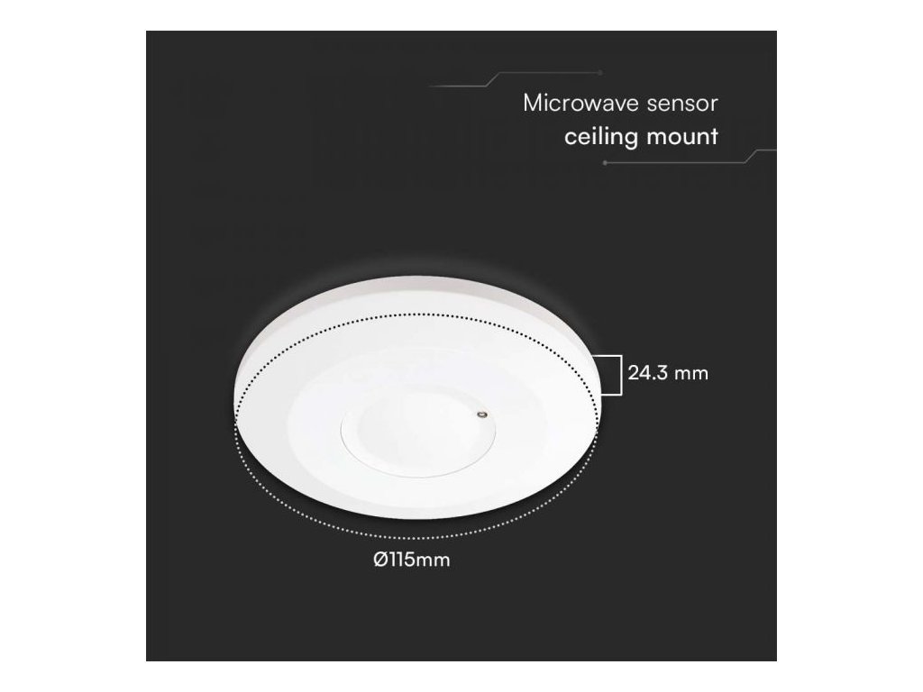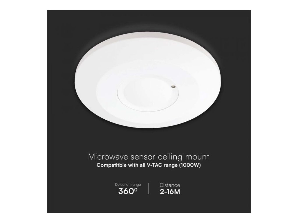 Senzor de mișcare cu microunde montat pe tavan max. 1000W, rază 2-16m, IP20, alb