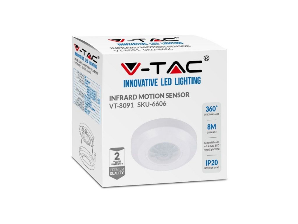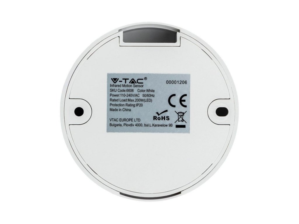 Senzor de mișcare de tavan, max. 200 W, rază max. 8 m, alb