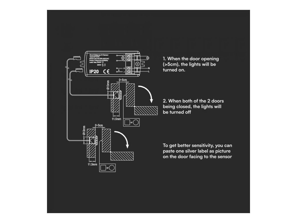 Senzor de mișcare infraroșu (uși deschise/închise), maxim 200W, IP20