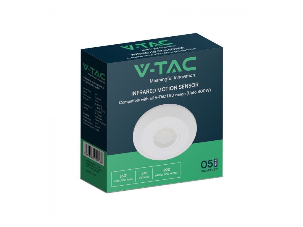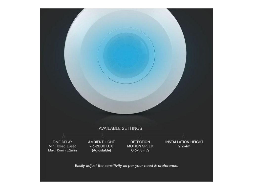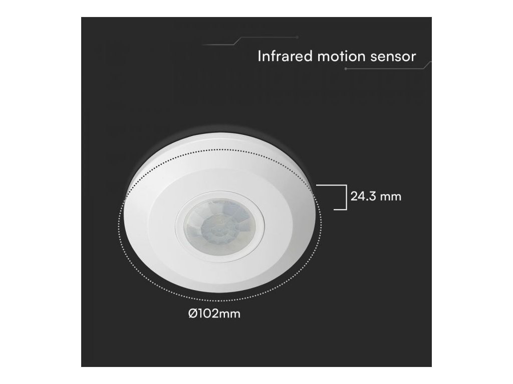 Senzor PIR pentru tavan, cu rază maximă de 8m, maxim 400W, IP20, alb