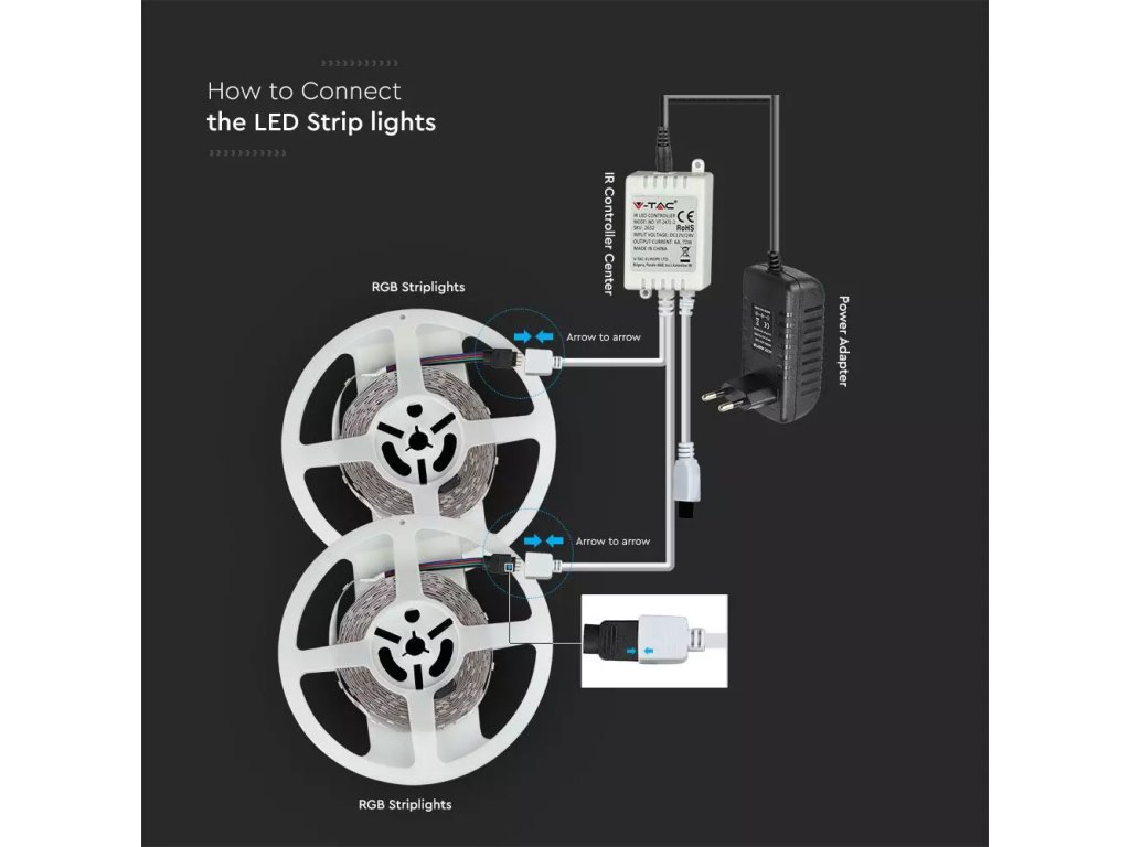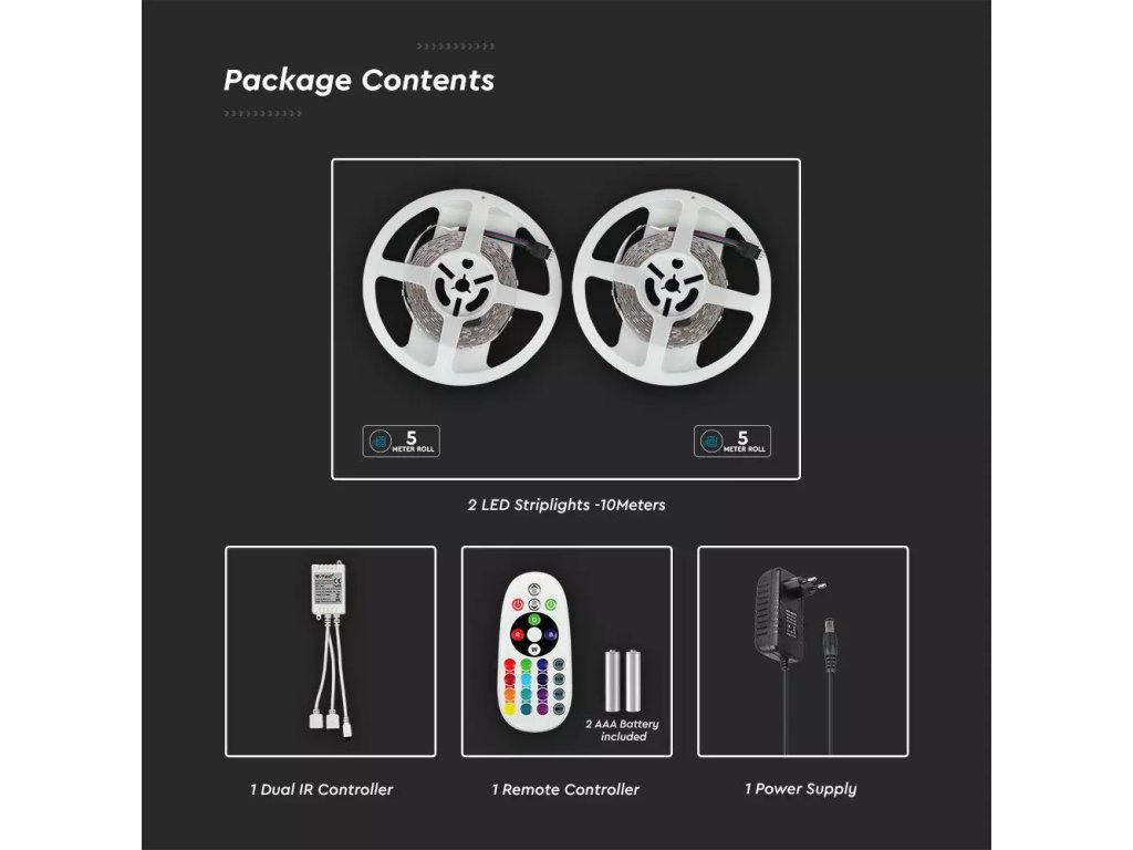 Set bandă LED RGB 4,8W/m, 2x5m + alimentare + control, IP20