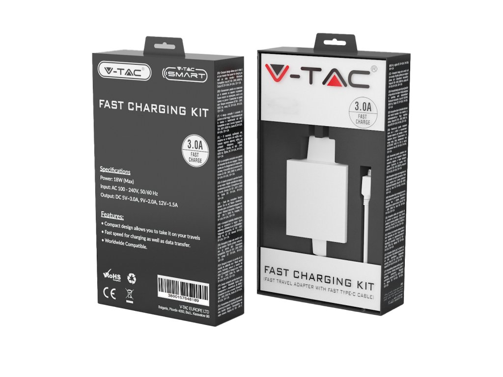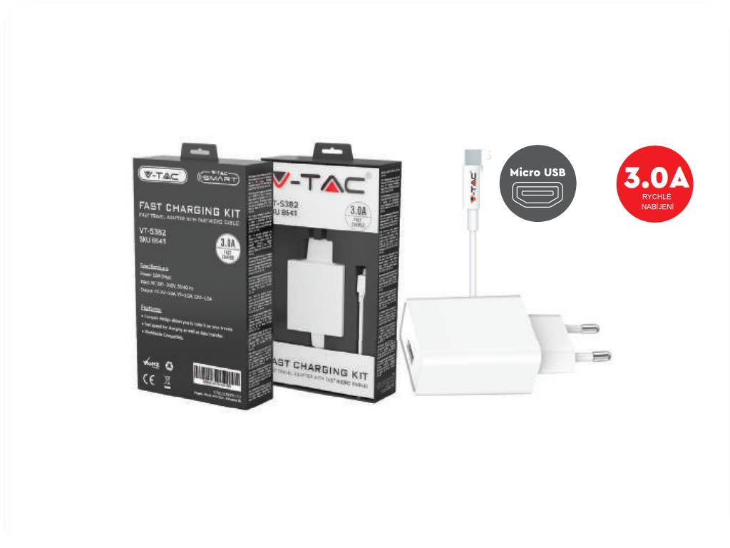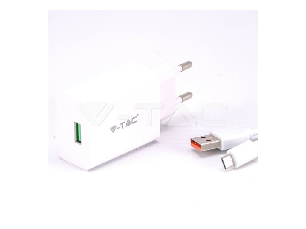 Set de incarcare rapida cu adaptor de voiaj + cablu micro USB, alb