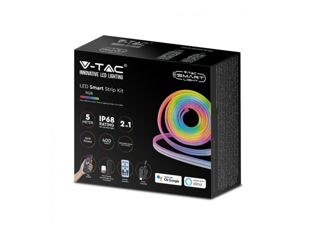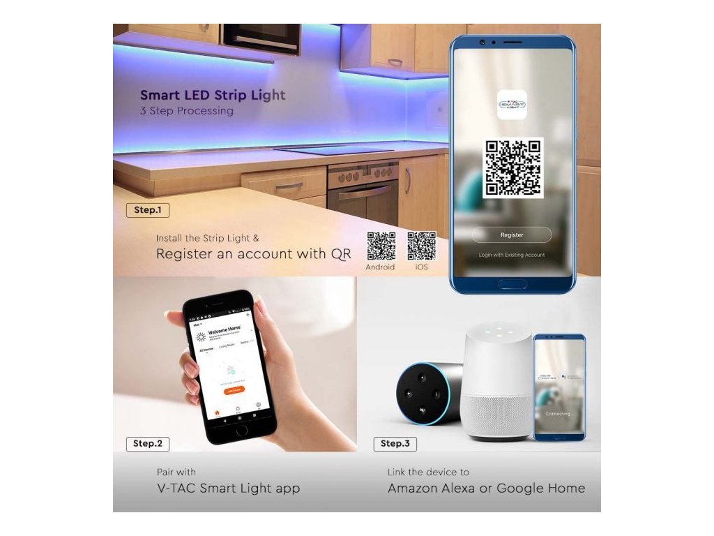 - Poate fi controlată prin intermediul aplicației V-TAC Smart Light sau prin Alexa și Google Home