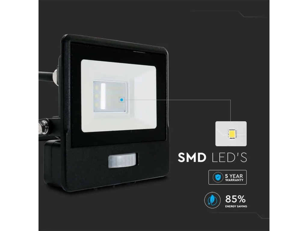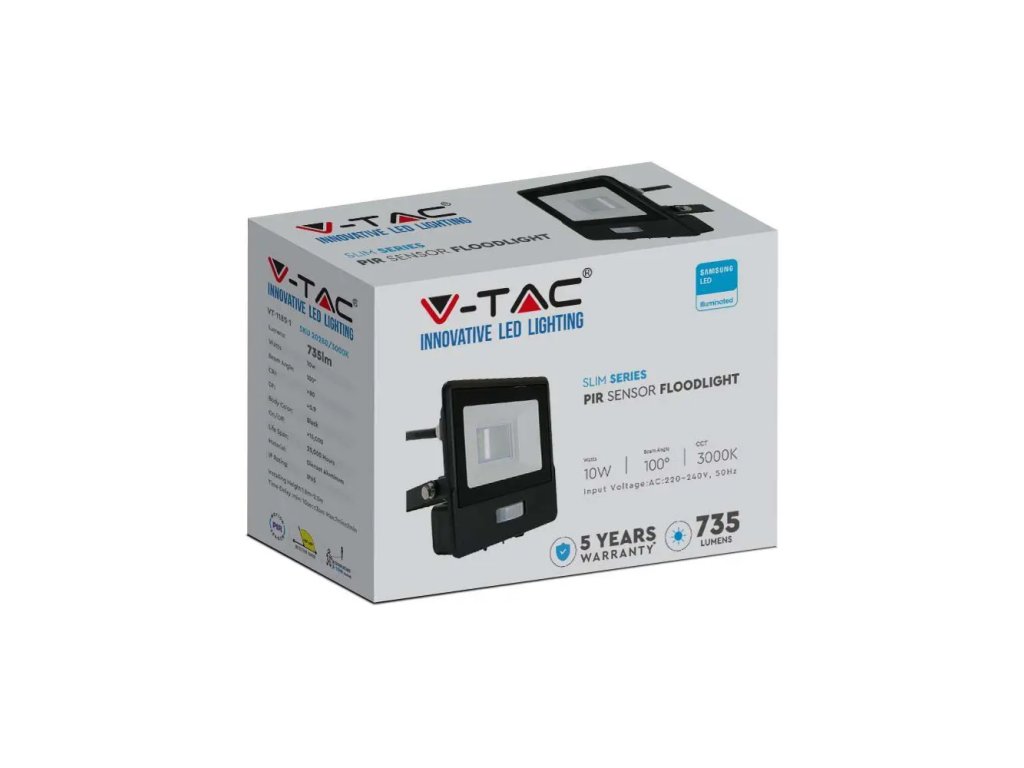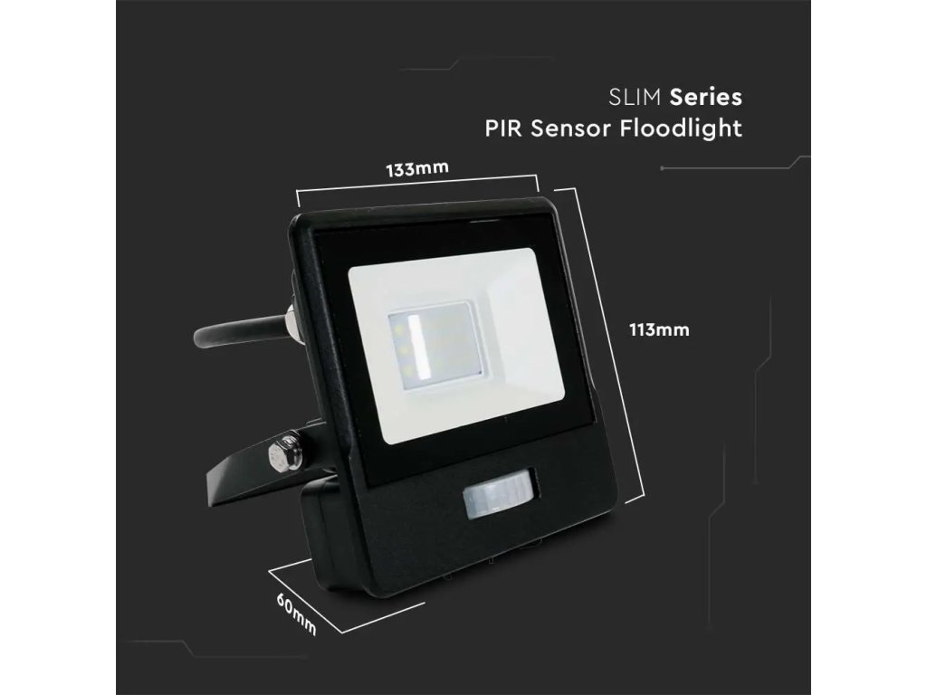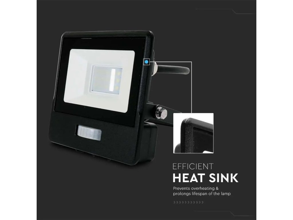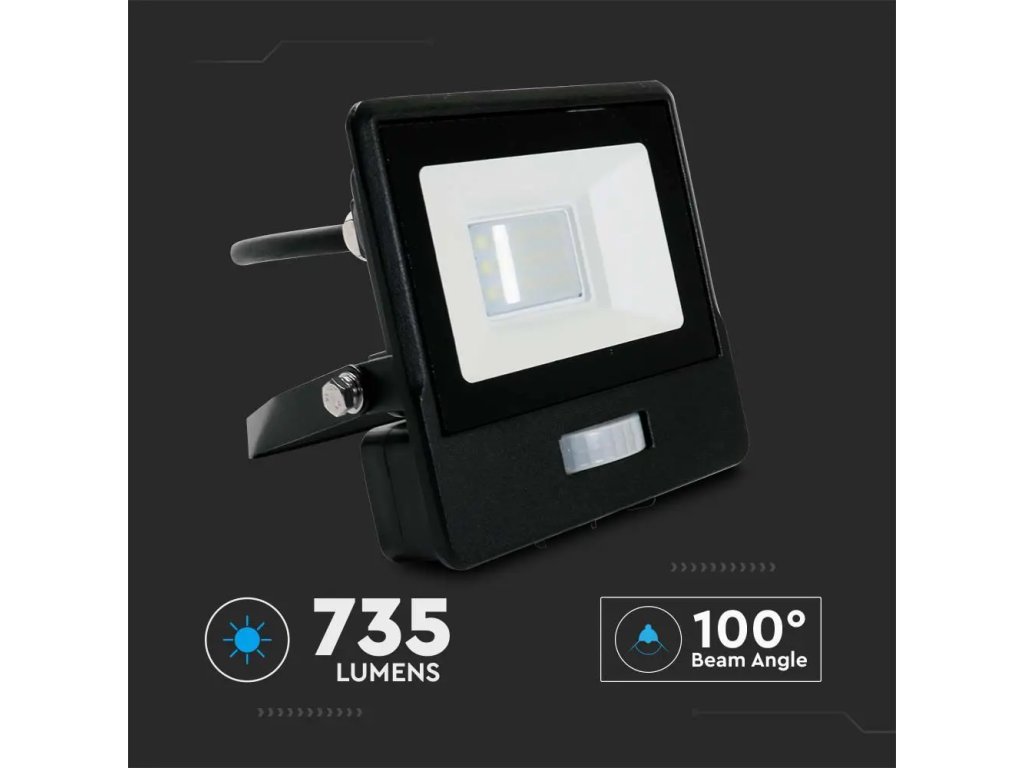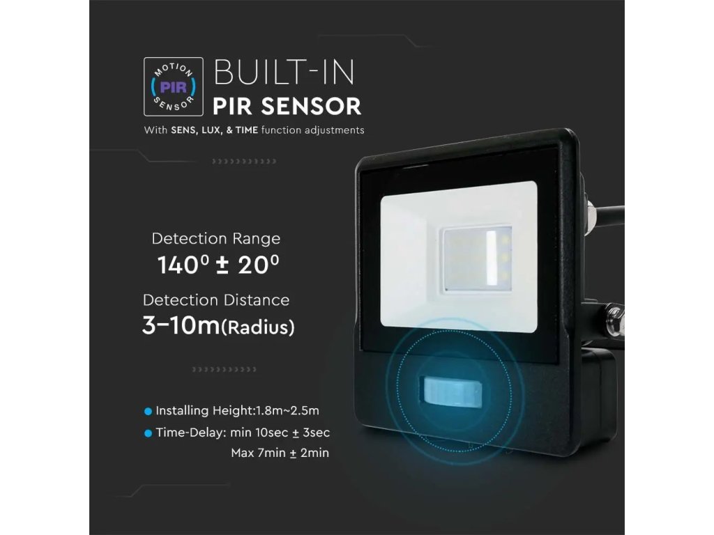 Spot LED cu senzor PIR, 10W, 735lm, cip Samsung, cablu 1m, 100°, IP65, negru