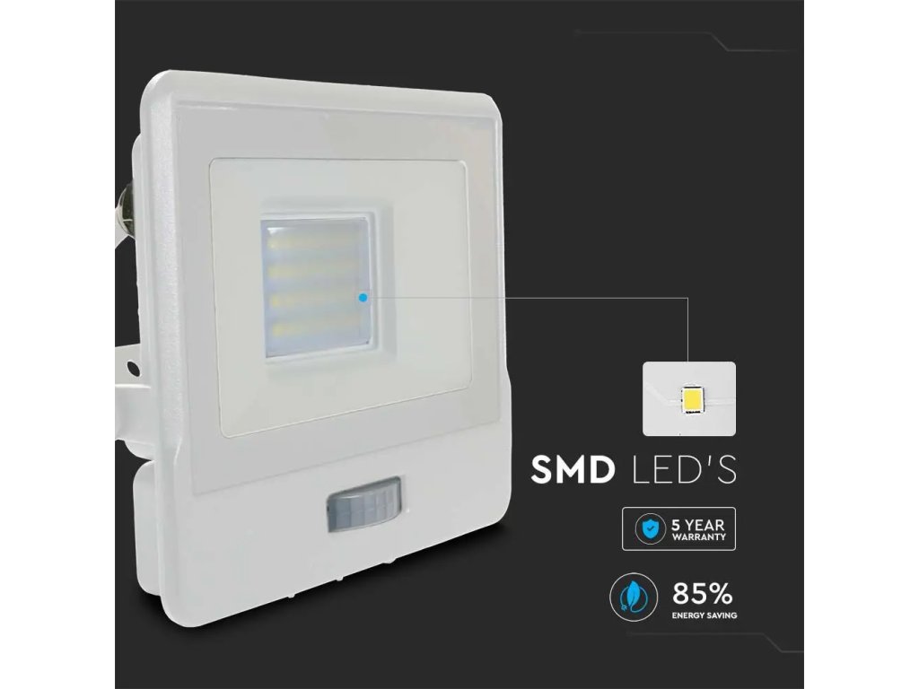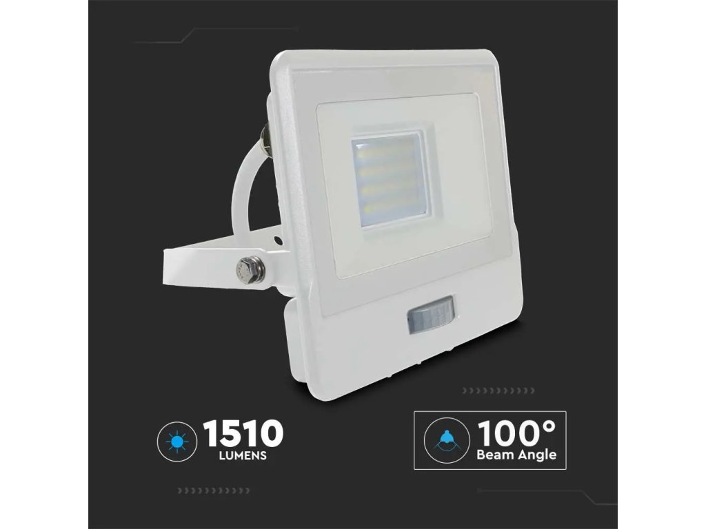 Spot LED cu senzor PIR, 20W, 1510lm, cip Samsung, cablu 1m, 100°, IP65, alb