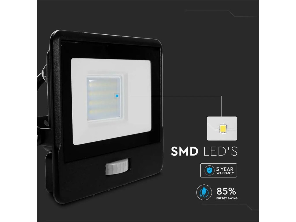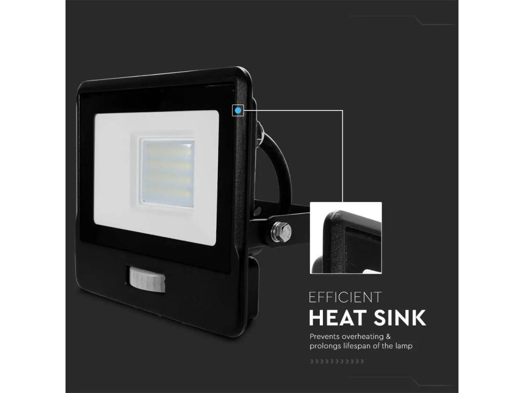 Spot LED cu senzor PIR, 20W, 1510lm, cip Samsung, cablu 1m, 100°, IP65, negru