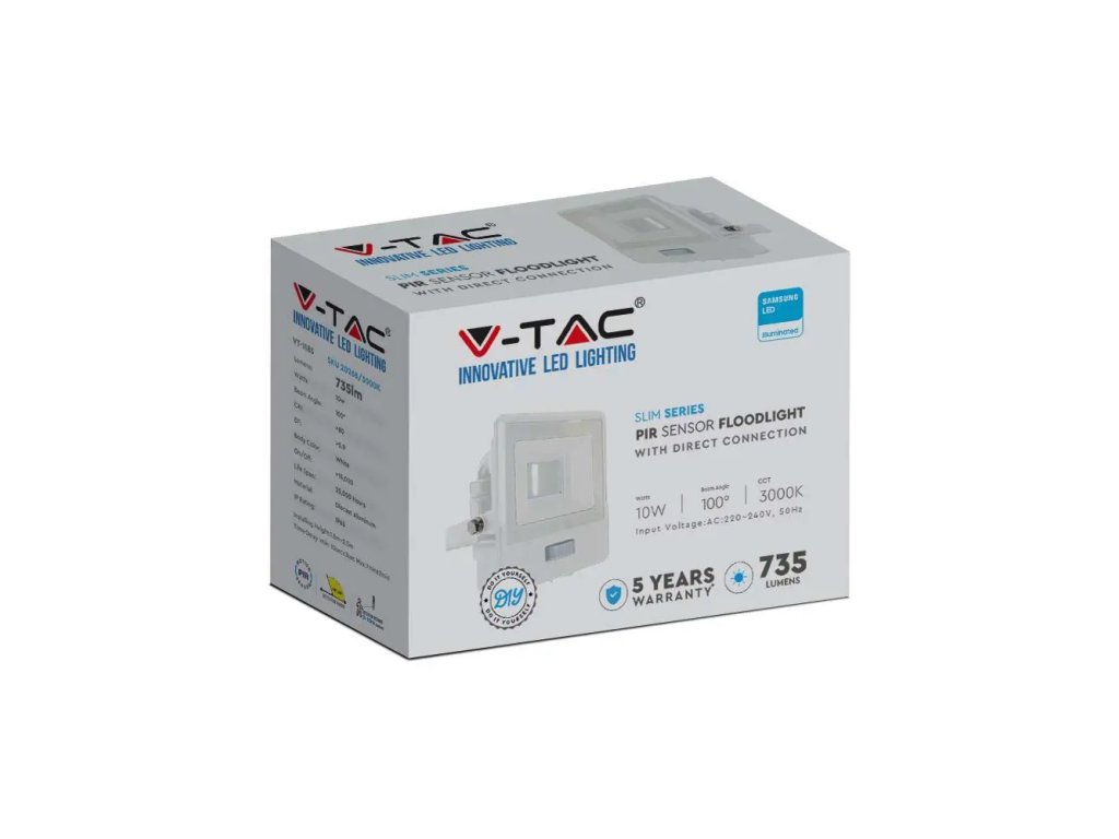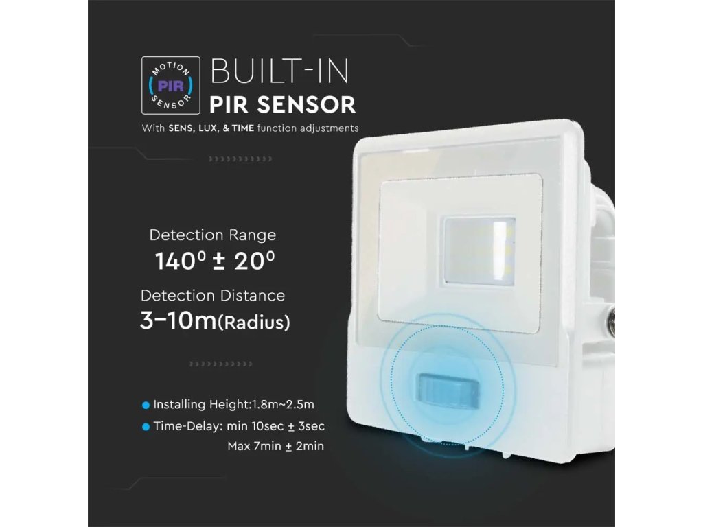 Spot LED cu senzor PIR 10W, 735lm, cip Samsung, 100°, IP65, alb