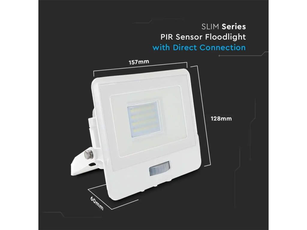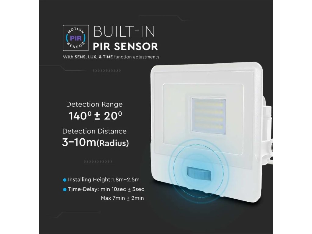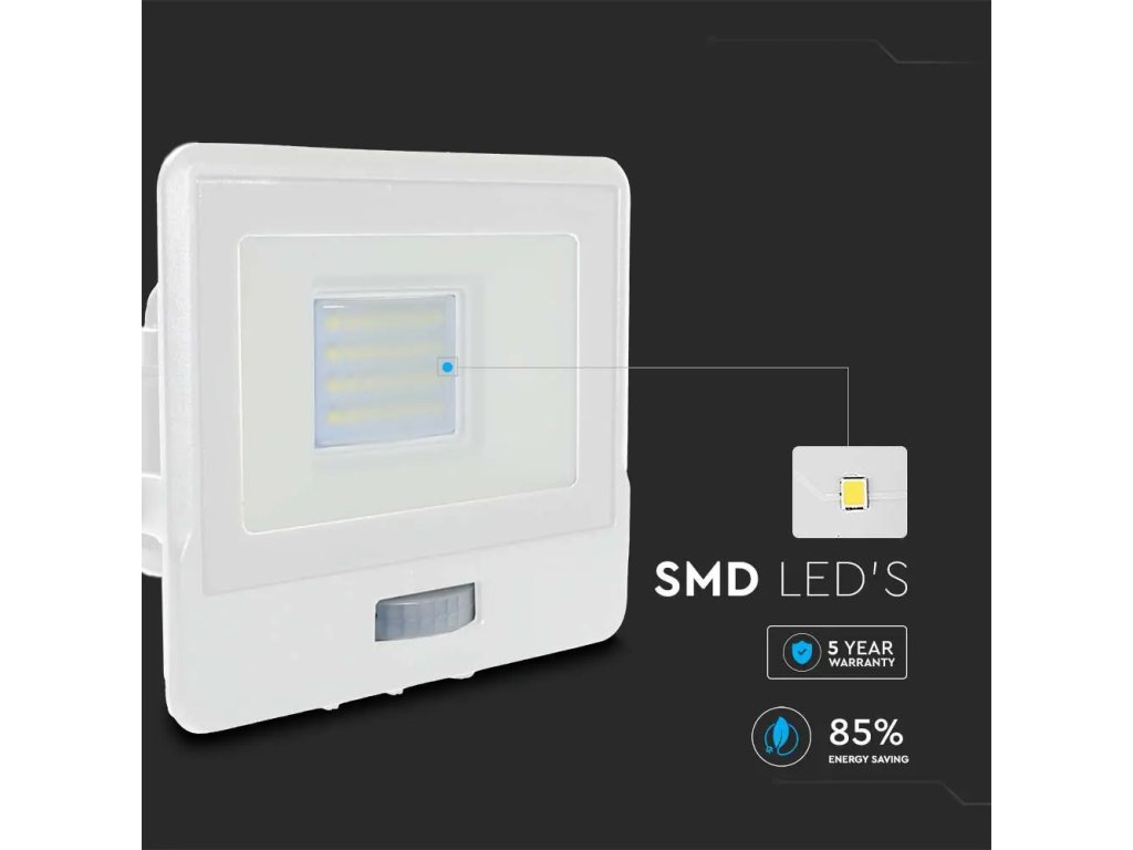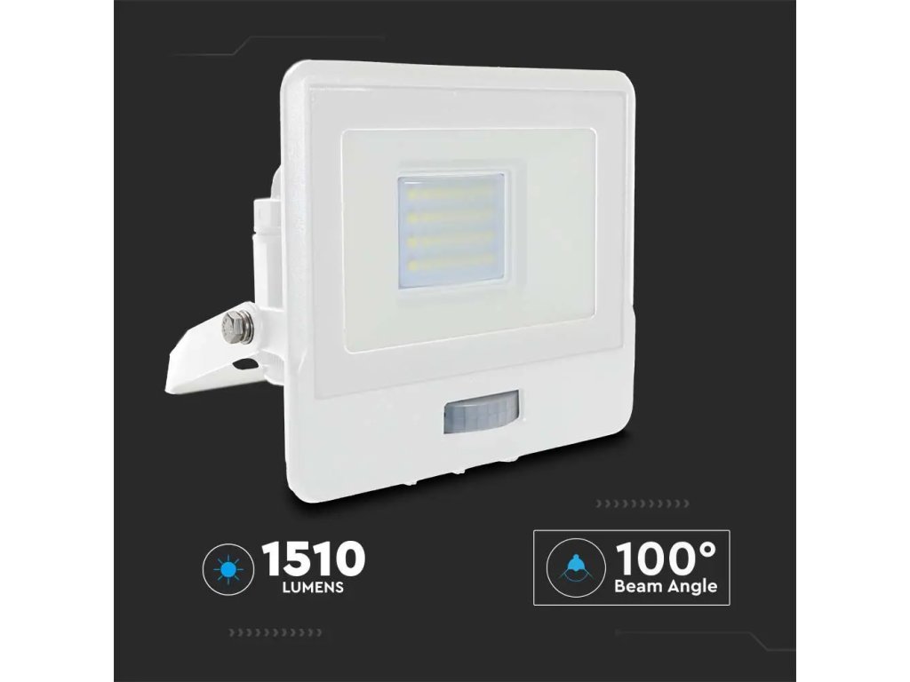 Spot LED cu senzor PIR 20W, 1510lm, cip Samsung, 100°, IP65, alb