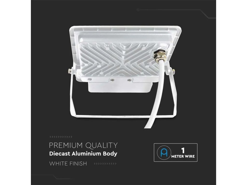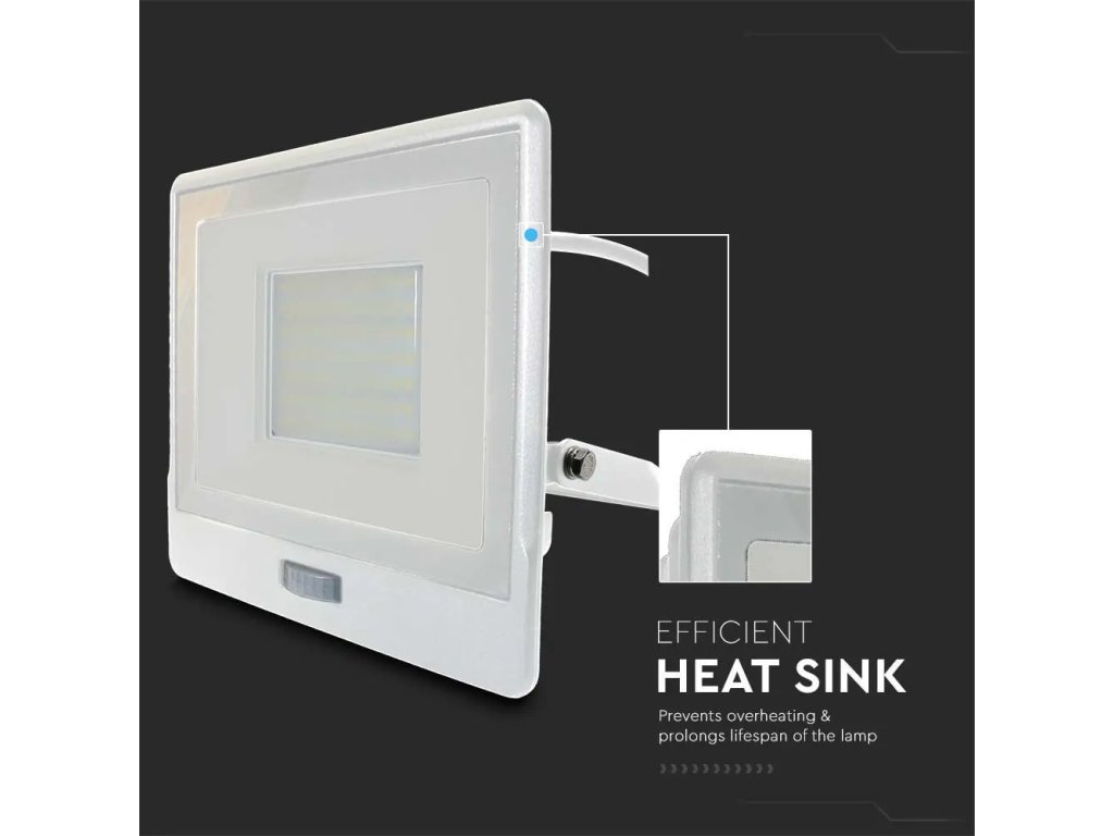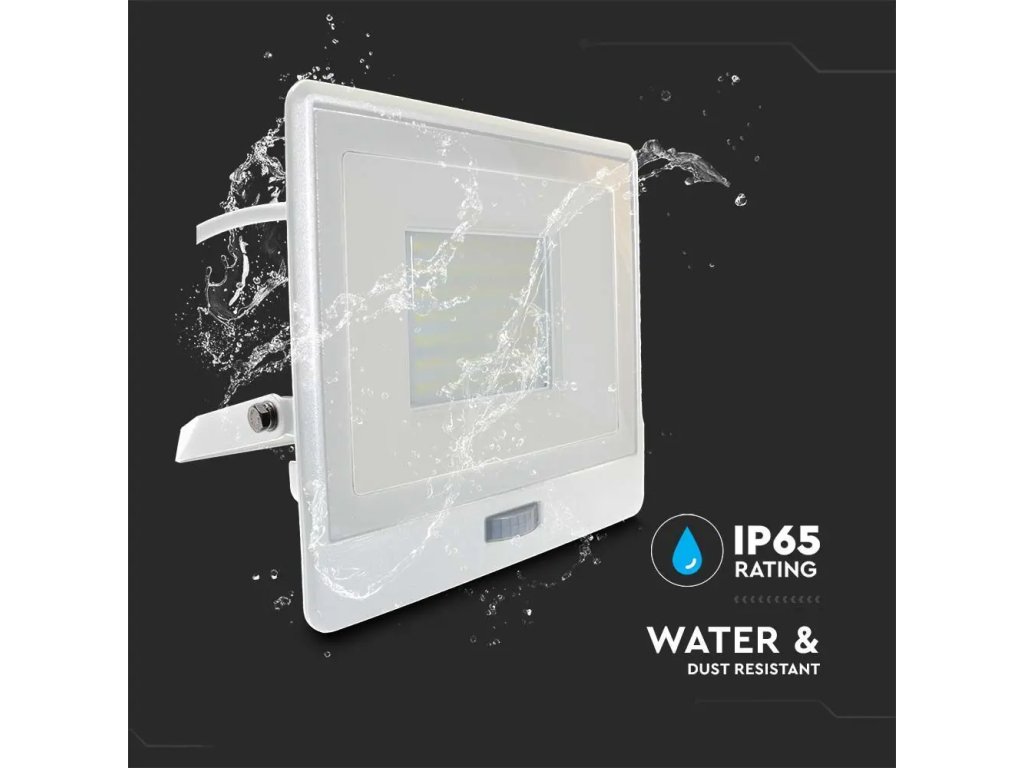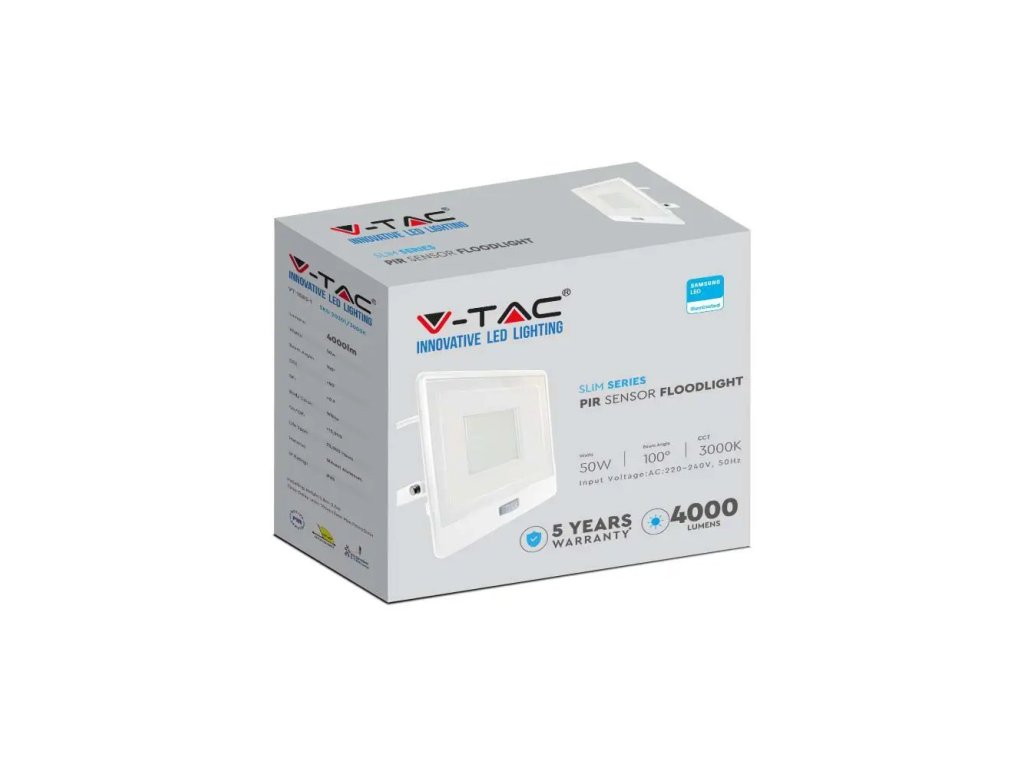Spot LED cu senzor PIR 50W, 4000lm, cip Samsung, cablu 1m, 100°, IP65, alb