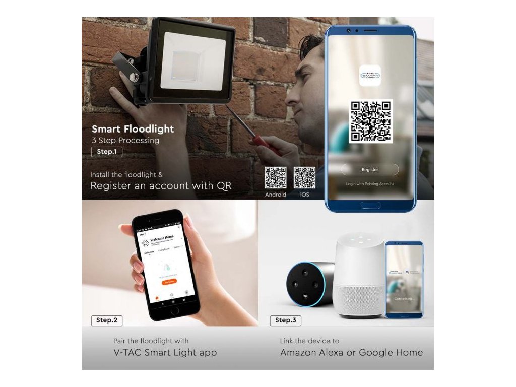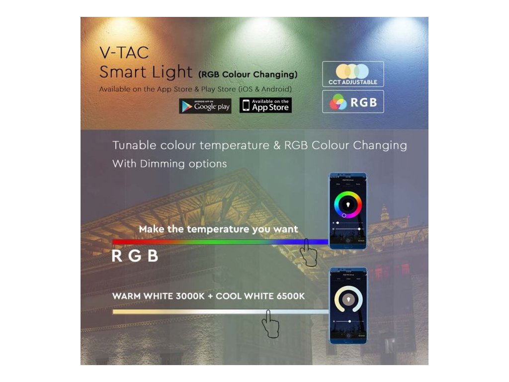 Spot LED inteligent 10W, 725lm, RGB+3000K-6500K cu conexiune directă, IP65, Amazon Alexa, Google Home