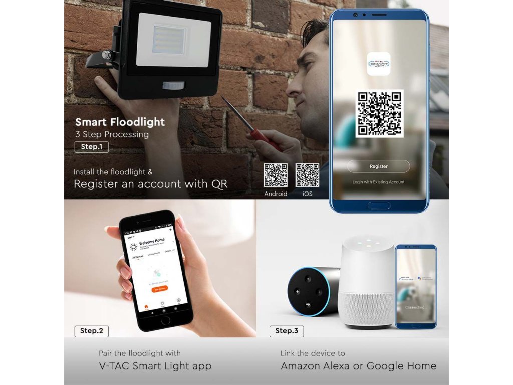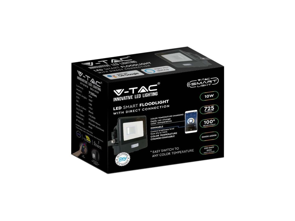 Spot LED inteligent cu senzor PIR, 10W, 725lm, 3000K-6500K cu conexiune directă, IP65, Amazon Alexa, Google Home.