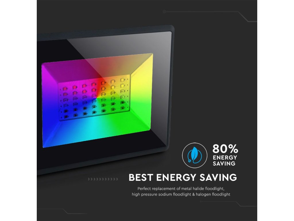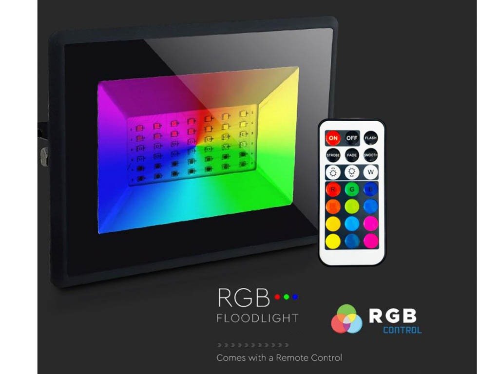 Spot LED RGB cu telecomandă cu infraroșu, 30W, IP65, negru