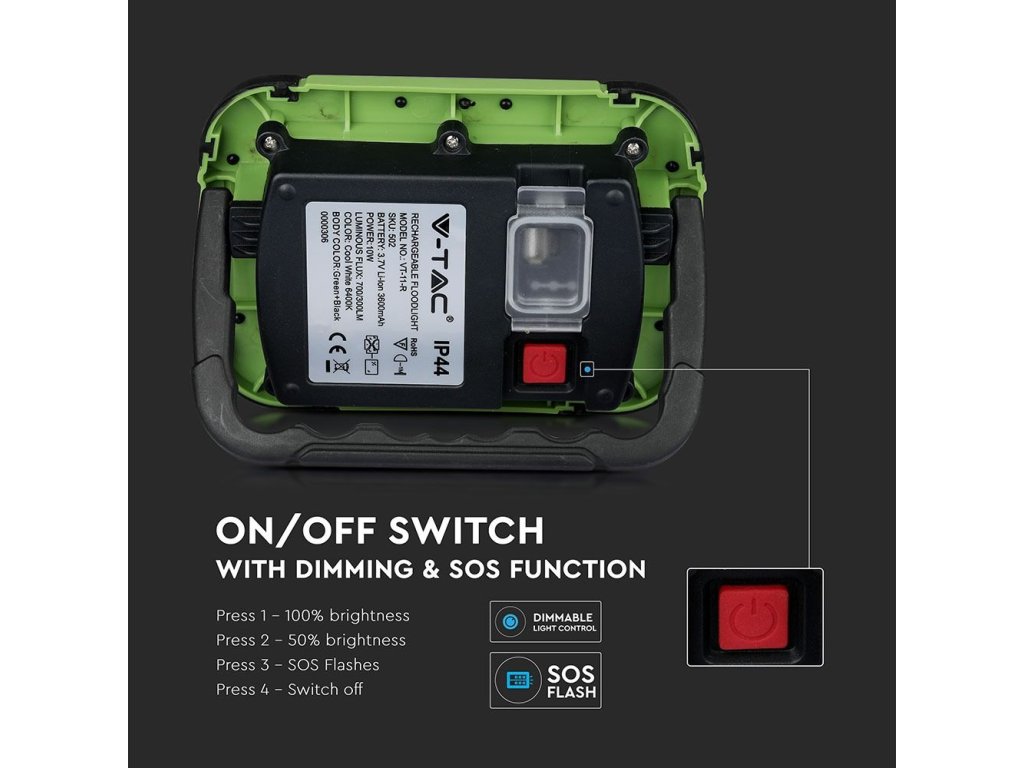 Spot portabil LED 10W + funcție SOS, reîncărcabil (700Lm), cip SAMSUNG, 6400K
