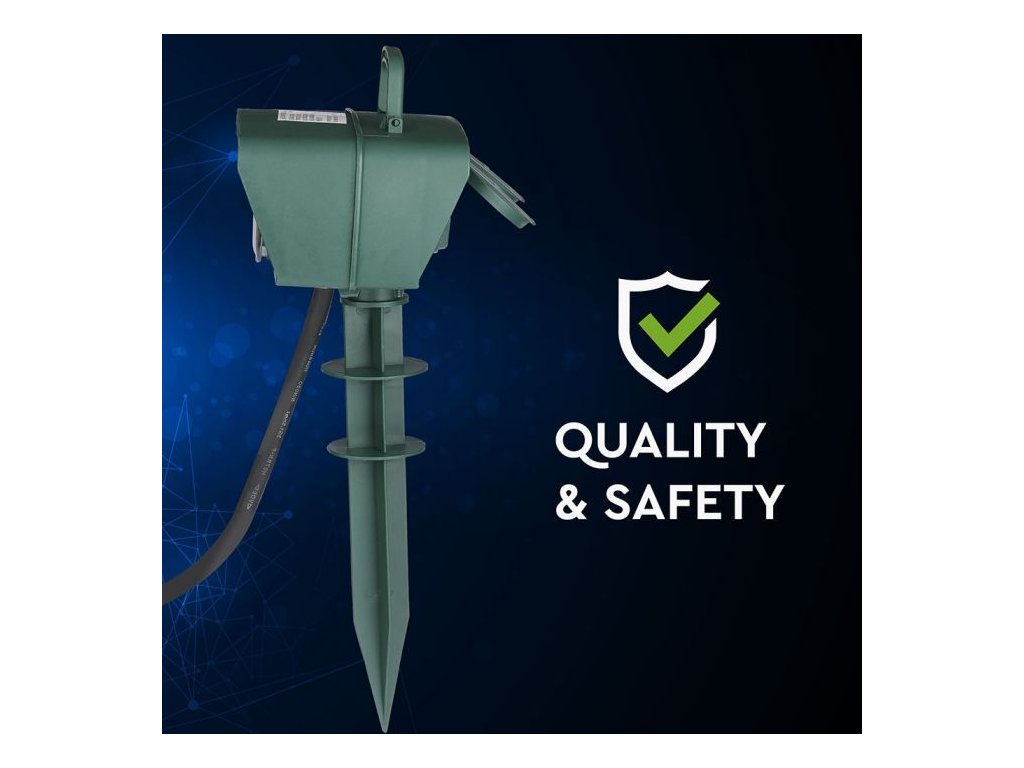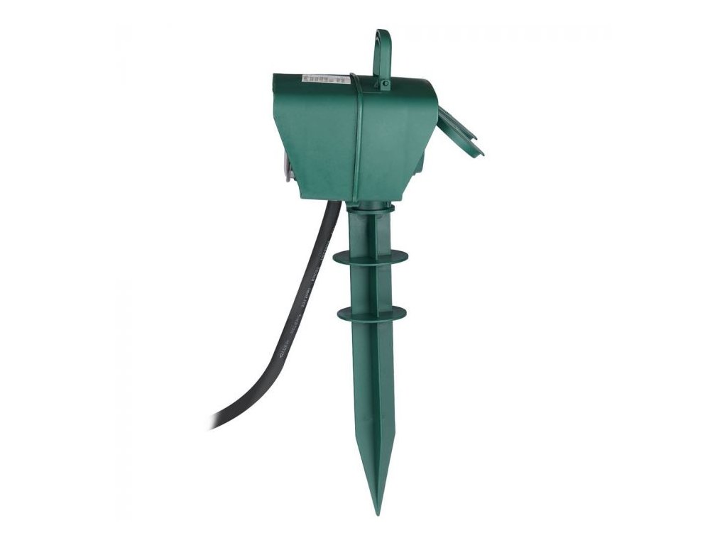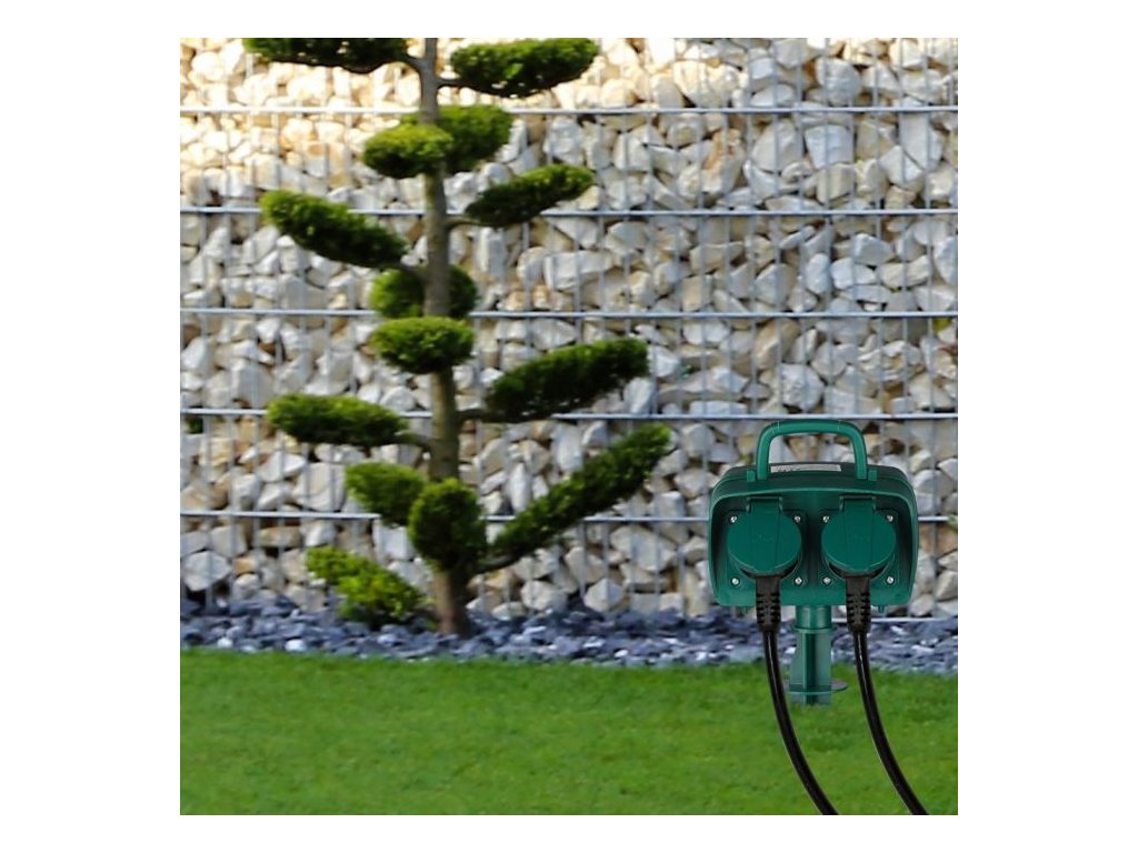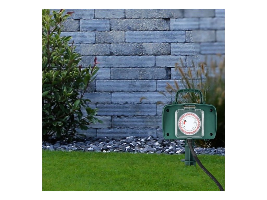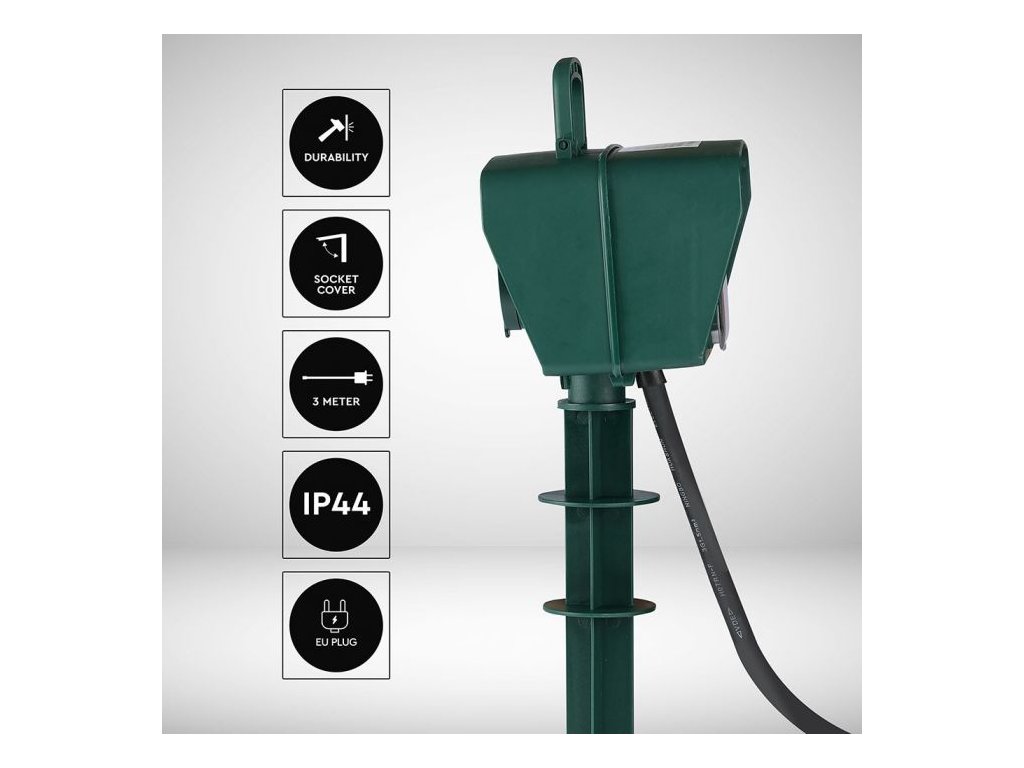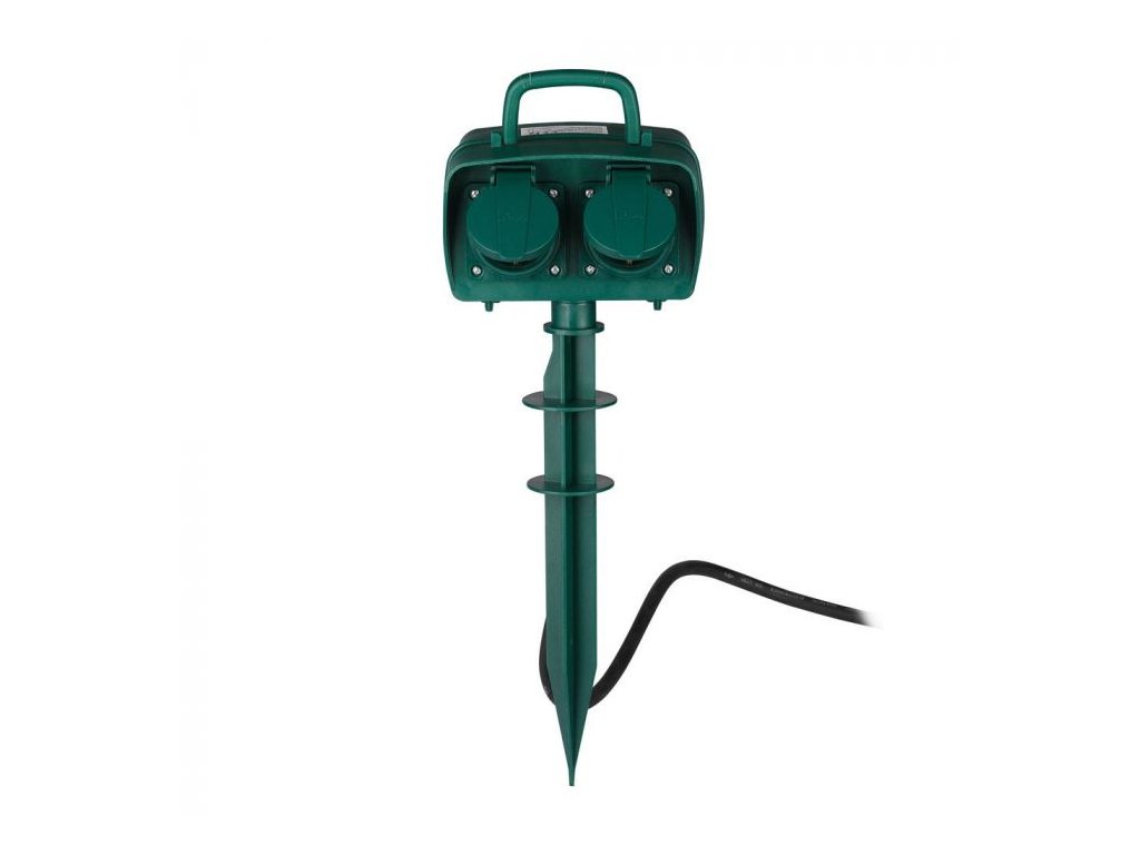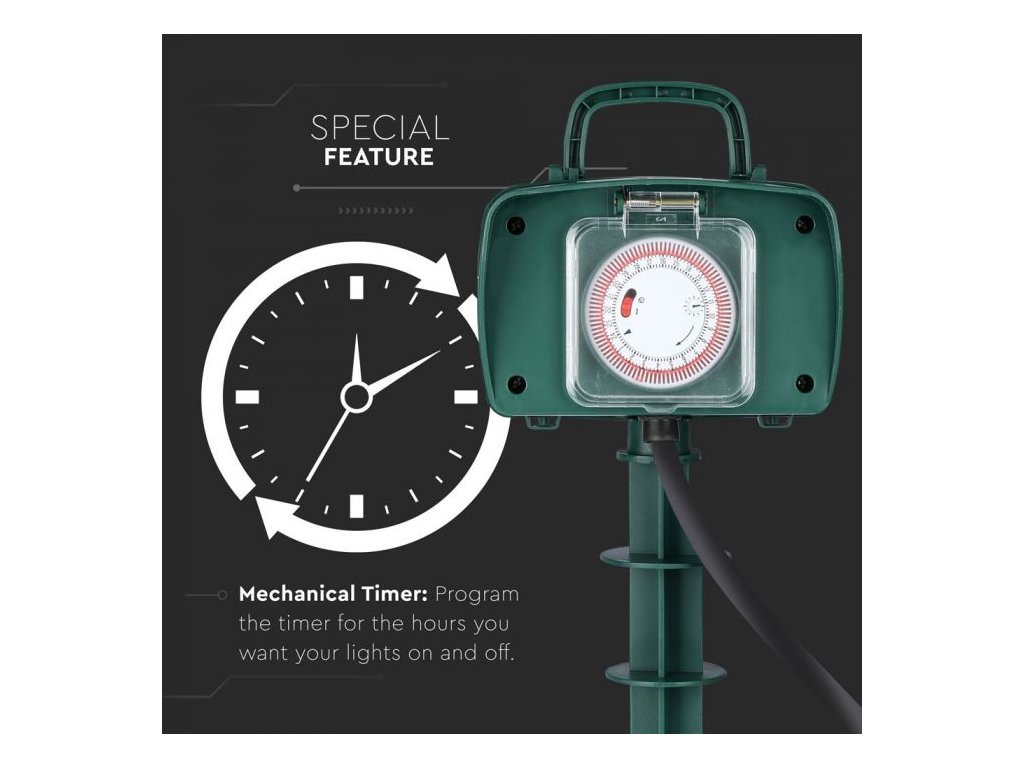 Stâlp de grădină, 2 prize cu cronometru mecanic (3G 1.5mmx3m), IP44, max. 3500W, verde