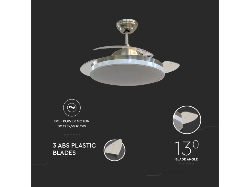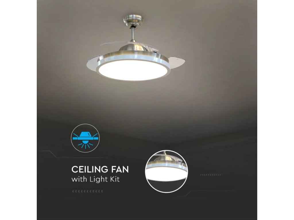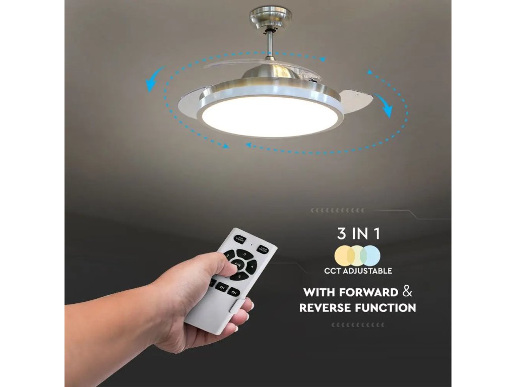 Ventilator de tavan 30W cu lumina LED cu telecomanda CCT, 3 pale